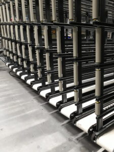 Vertikales Lager mit Induktionsantrieb für intelligentes Lagern