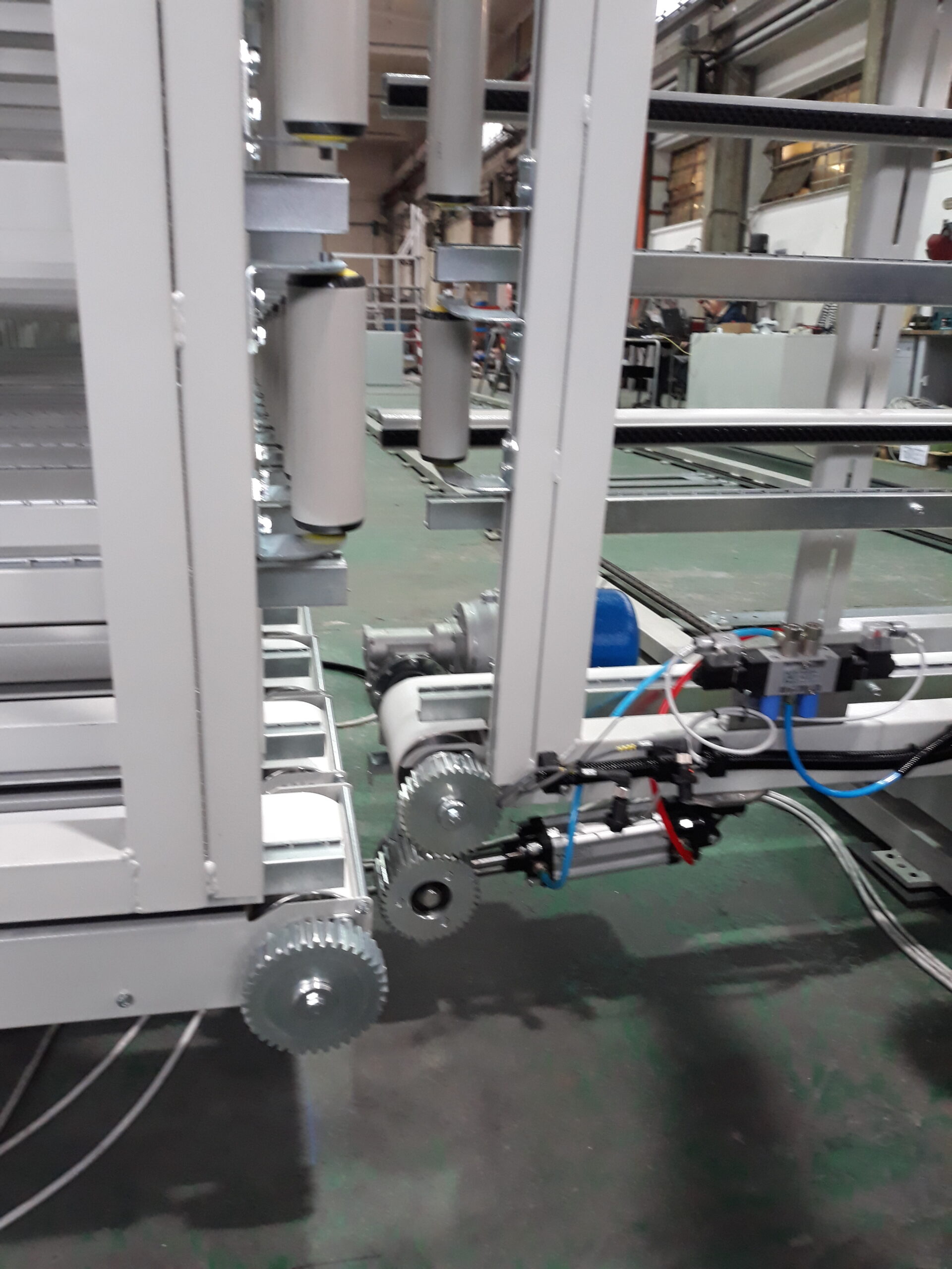- Zahnstangensystem zur Antriebübertragung auf Lagerbänder