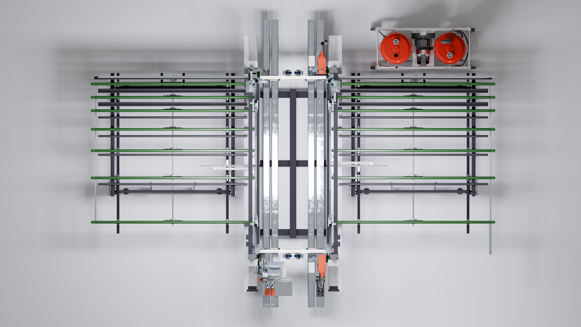 - Perfekte Integration in den Produktionsfluss. Platzierbar zwischen SL4-FF EVO und FAZ Tisch, ermöglicht die vollständige Produktion von fertigen Türen in nur 3 Schritten.