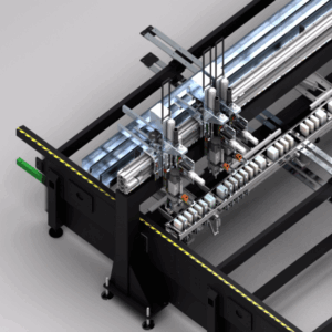 ESU ist die CNC-Station von Graf Synergy, die sich der automatischen Verschraubung von Metallverstärkungen innerhalb von PVC-Profilen widmet. Sie integriert sich direkt in den Produktionsfluss und arbeitet in Linie mit dem dynamischen Tisch sowie den Schneid- und Bearbeitungszentren, um die Befestigung der Verstärkungen in Nullzeit zu realisieren.